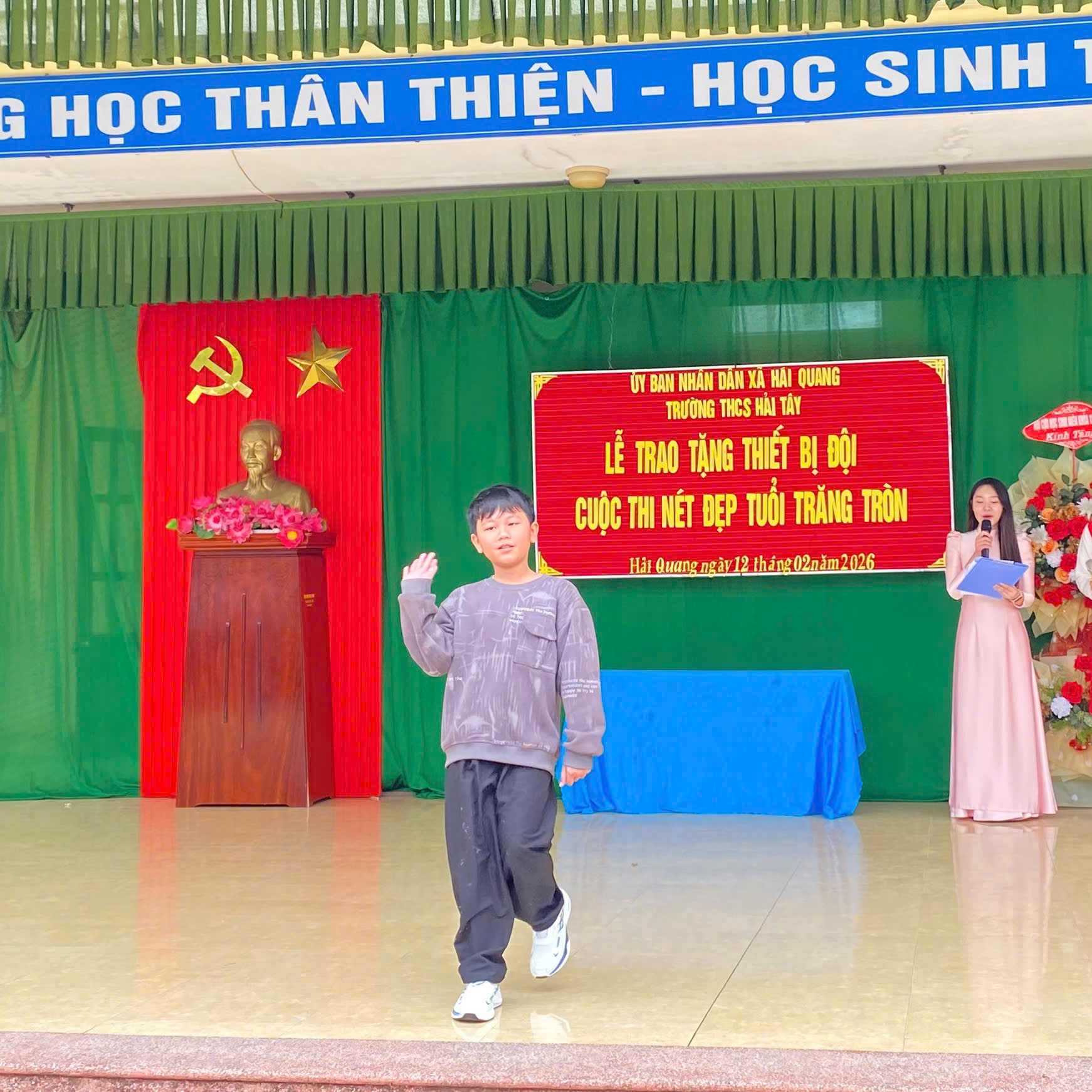 Trong không khí thi đua sôi nổi của năm học, nhằm tạo sân chơi lành mạnh, bổ ích cho học sinh, đồng thời tôn vinh vẻ đẹp trong sáng, năng động và tài năng của lứa tuổi thiếu niên, chiều ngày 12/02/2026 Trường THCS Hải Tây đã long trọng tổ chức Cuộc thi “Nét đẹp tuổi trăng tròn” lần thứ Nhất. Chương trình đã để lại nhiều ấn tượng tốt đẹp, trở thành hoạt động ý nghĩa góp phần giáo dục toàn diện về đức – trí – thể – mỹ cho học sinh nhà trường.