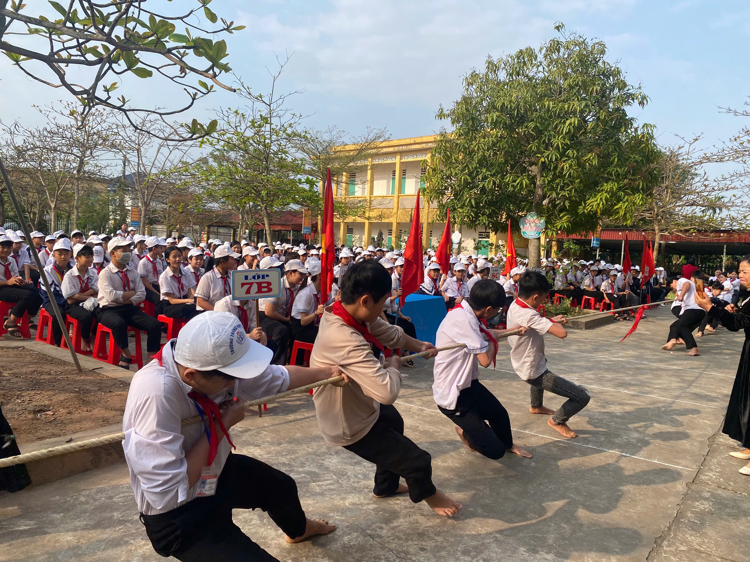 Tiếp nối chương trình là các trò chơi dân gian hấp dẫn dành cho học sinh. Các em được tham gia nhiều hoạt động vui nhộn, tăng cường sự gắn kết và tinh thần đồng đội.Không khí sân trường trở nên vô cùng náo nhiệt với tiếng cười, sự cổ vũ và niềm vui của các bạn học sinh.